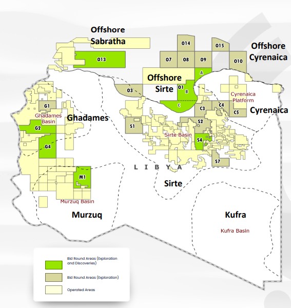 The 22 available blocks are distributed across key petroleum provinces, including the Sirte, Murzuq, and Ghadames Basins, as well as offshore zones in the Sabratha Basin, Sirte Basin, and areas off the Cyrenaica Platform, covering 128,714 square kilometres of high-potential acreage.